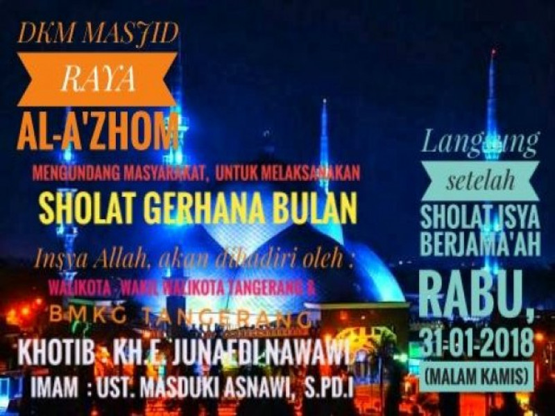 <div dir="auto">Kejadian alam langka akan terjadi nanti malam, yaitu gerhana bulan penuh dengan posisi jarak terdekat bulan dan bumi. Warga kota Tangerang menyambut antusias fenomena alam ini dengan akan nonton bersama gerhana serta salat gerhana di masjid Al-Azhom.<div dir="auto"><div dir="auto">Ichsan (45) warga Cipondoh mengaku akan mengajak istri dan anaknya untuk melihat fenomena gerhana nanti malam. "Ini kan kejadian langka yang akan terulang ratusan tahun, nah nanti malam selain akan ikut kegiatan salat gerhana saya juga ajak istri dan anak untuk melihat gerhana," ucapnya, Rabu (31/1).<div dir="auto"><div dir="auto">Senada, Dika (32) warga Tanah Tinggi akan menyempatkan waktu untuk melihat gerhana bulan yang terjadi di awal tahun ini. "Saya akan sempatkan nanti malam untuk melihat gerhana bulan, sayang kan ini kejadian langka," katanya.<div dir="auto"><div dir="auto">Sementara itu, Kepala BMKG Tangerang, Teguh Rahayu menjelaskan ini fenomena langka yang terjadi sekitar 152 tahun yang lalu.<div dir="auto"><div dir="auto">“Ini fenomena langka yang terjadi sekitar 152 tahun yang lalu, Hari ini kami mempersiapkan acaranya, besok nobarnya,” ujar Kepala BMKG Tangerang, Teguh Rahayu.<div dir="auto"><div dir="auto">Pihaknya sudah siap menggelar acara nobar ini. Acara tersebut dimulai sedari pukul 17.00 – 22.00.<div dir="auto"><div dir="auto">“Warga yang datang gratis tidak dipungut biaya untuk melihat supermoon dengan menggunakan tropong yang kami sediakan,” ucapnya.<div dir="auto"><div dir="auto">Menurutnya puncak gerhana total terjadi sekira pukul 20.31 WIB. Ia pun mengajak masyarakat untuk bisa menikmati femomena yang terjadi.