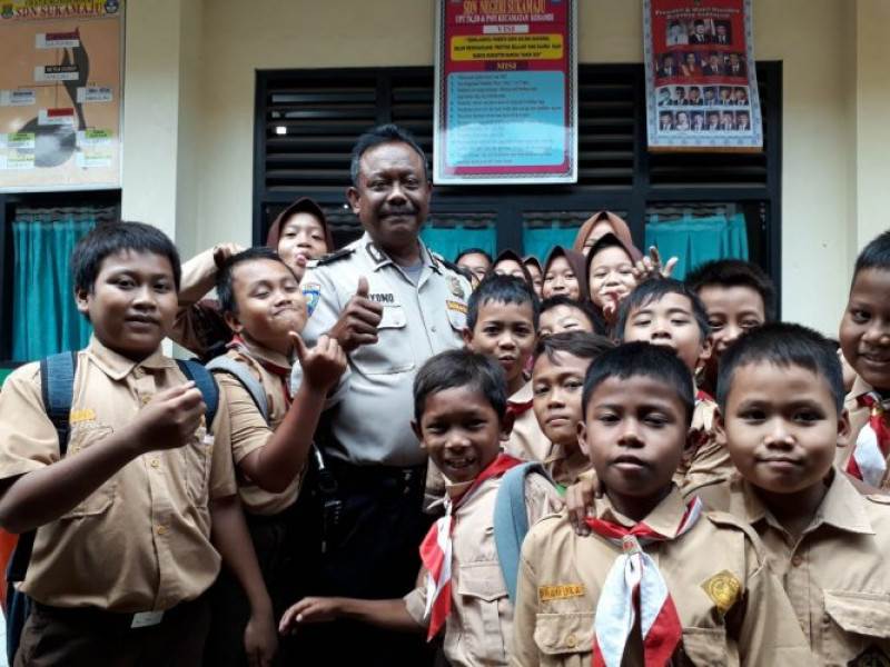 Aiptu Daryono Sambang Kesekolah SD Suka Maju, Kp Kemplang rt 01/015, Desa Kosambi Timur, Kosambi, Tangerang pada hari Jumat 09 Maret 2018, jam 09.30.Wib.