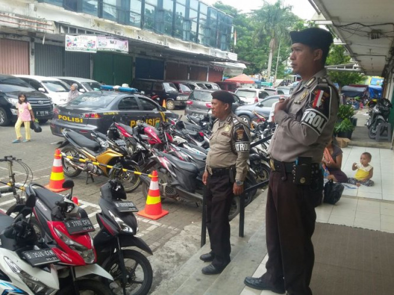 Unit 1 Sabhara Polsek Jatiuwung yang di pimpin oleh Aiptu Jaja Nugraha, beserta anggota lainnya saat melaksanakan Patroli Dialogis / Mobile dan Strong Point antisipasi gangguan kamtibmas di wilayah hukum Polsek jatiuwung menyambangi Gereja Bethel Indonesia (GBI) yang berlokasi di Ruko Duta Mas Plaza Taman Cibodas, Jl. Raya Gatot Subroto Km.4 Jatiuwung, Kelurahan Sangiang Jaya, Kecamatan Periuk Kota Tangerang.
