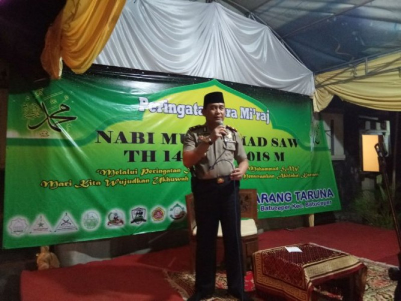Batu Ceper - Pada hari Sabtu (28/4/2018) pukul 20.30 Wib bapak Kapolsek Batu Ceper Kompol Hidayat Iwan Irawan. SH. MA telah menghadiri kegiatan Isro Miroj Nabi besar Muhammad SAW tahun 1439 H/2018 M, untuk kegiatan berada di RT.01/02 JL. Keadilan Daan Mogot Km. 21 kelurahan Batu Sari kecamatan Batu Ceper Kota Tangerang. Kegiatan ini di selenggarakan oleh para remaja putra-putri RT. 01/02 Untuk ketua panitia penyelenggara di ketuai oleh Sdr. Isef syaeful rocky. Untuk jumlah hadirin yang hadir sebanyak 300 orang.