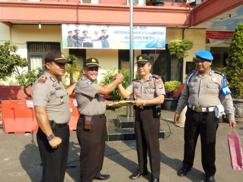 Neglasari@restrotangerangkota – Pemberian Cinderamata kepada AKP. SULARJO selesai Pelaksanaan apel Bersama Program Jam Pimpinan oleh Waka Polsek Neglasari AKP YUSUP SUHADMA, SH bersama Personil Polsek Neglasari bertempat di halaman Polsek Neglasari, Jl. Suryadharma, Neglasari, Kota Tangerang. Senin (30/04/2018) sekitar pukul 08.00 WIB