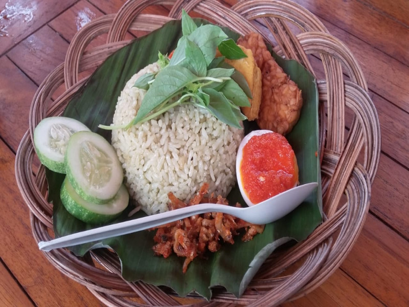 "Nasi liwet cincau ini inovasi dari UKM di Kampung Cincau, tak hanya mengenyangkan namun juga menyehatkan, warnanya yang hijau khas daun cincau dipadukan dengan lauk tahu tempe, telur balado dan ikan teri," ujarnya.