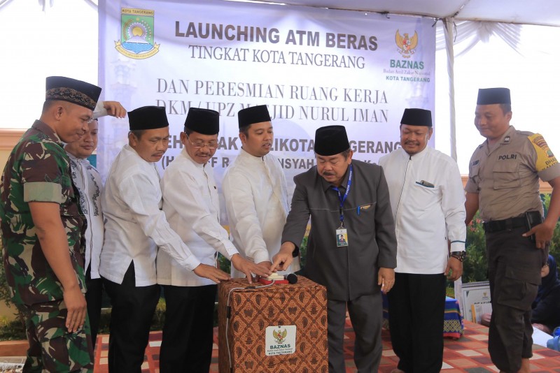 Wali Kota Tangerang Arief R. Wismansyah bersama dengan Pj. Sekda Kota Tangerang Tatang Sutisna dan Ketua Baznas Kota Tangerang Aslie Elhusyairy meresmikan ATM Beras dan Sekretariat UPZ Masjid Nurul Iman yang berada di wilayah Poris Plawad Utara RT 03/05 Kec. Cipondoh, Jum'at (26/7/2019).