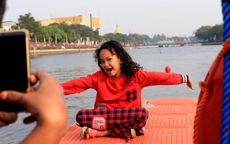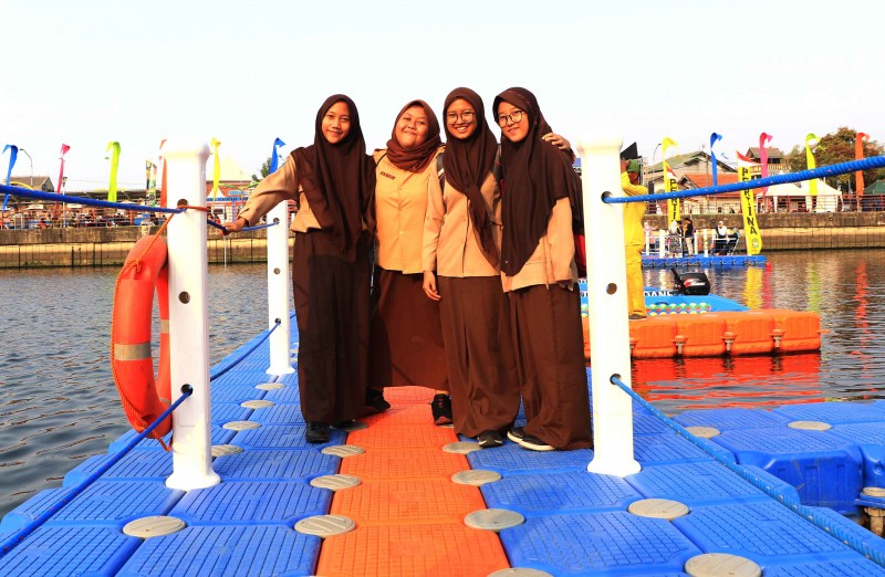 Jembatan apung yang disiapkan oleh Dinas Pekerjaan Umum dan Penataan Ruang (DPUPR) Kota Tangerang ini juga menjadi salah satu spot Instagramable bagi para remaja untuk swafoto bersama teman dan keluarga.