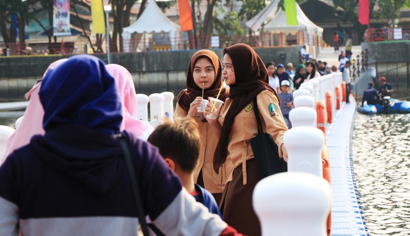 Sejumlah siswi, Mayang dan Fitri yang ditemui di lokasi usai pulang sekolah juga tertarik dengan jembatan apung yang disediakan Pemkot Tangerang dalam gelaran Festival Cisadane 2019.