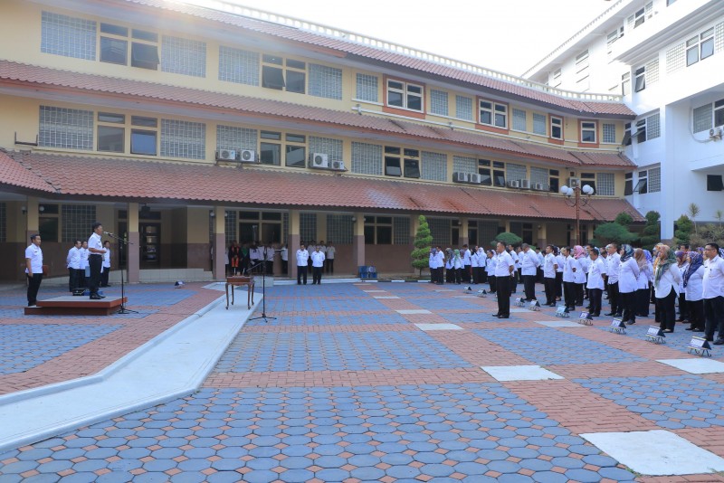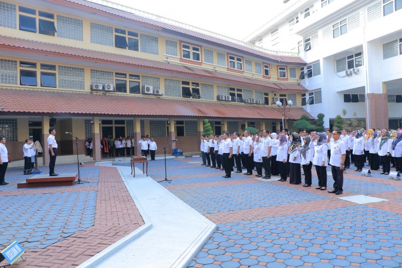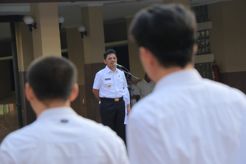Wakil Wali Kota Tangerang H. Sachrudin memimpin apel pagi pegawai di lingkungan Pemkot Tangerang di Pusat Pemerintahan Kota Tangerang, Rabu (7/8).