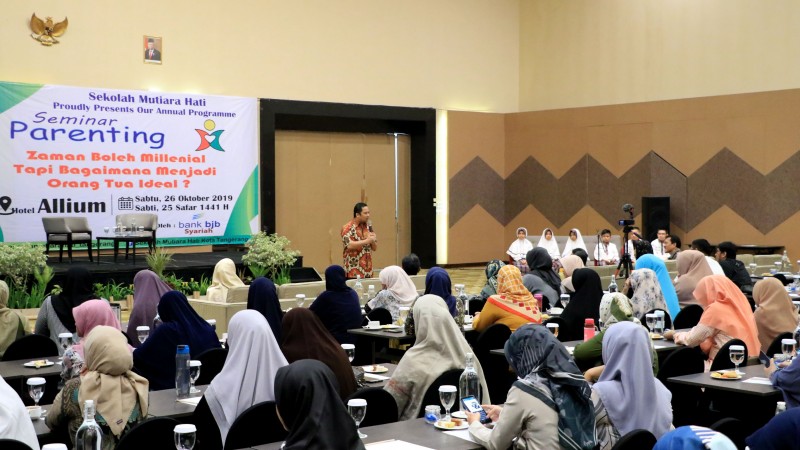 Wali Kota Tangerang membuka kegiatan seminar parenting dengan tema "Zaman Boleh Milenial, tapi Bagaimana Menjadi Orang Tua Ideal" yang digelar Sekolah Mutiara Hati di ballroom Hotel Alium, Tangerang, Sabtu (26/10).