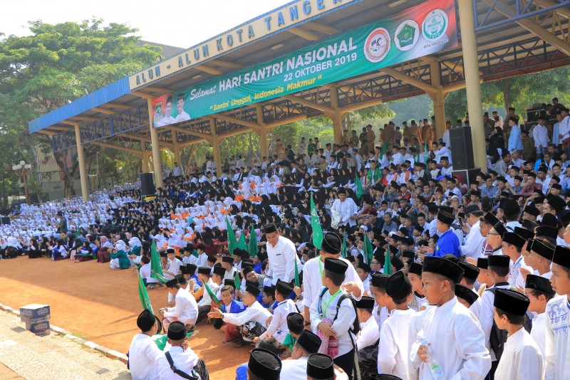 Peringatan Hari Santri ini diikuti tak kurang dari 5.000 santri dari berbagai pondok pesantren di Kota Tangerang dengan Wali Kota Tangerang H. Arief R. Wismansyah sebagai pembina upacara.