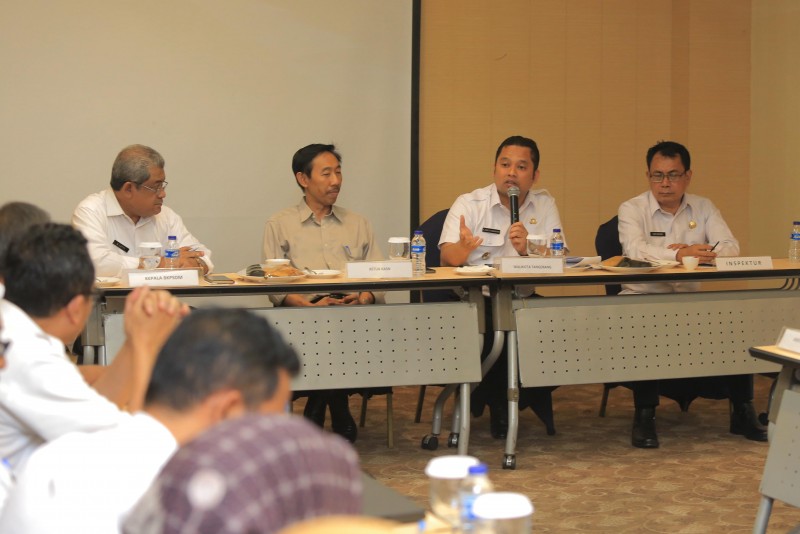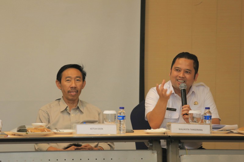 Wali Kota Tangerang Arief R. Wismansyah bersama Ketua Komisi Aparatur Sipil Negara (KASN) Agus Pramusinto, Kepala Badan Kepegawaian dan Pengembangan Sumber Daya Manusia (BKPSDM) Kota Tangerang Akhmad Lutfi, dan Kepala Inspektorat Kota Tangerang Dadi Budaeri hadir dan memberikan arahan langsung dalam acara Verifikasi Penilaian Mandiri Sistem Merit Tahun 2019.