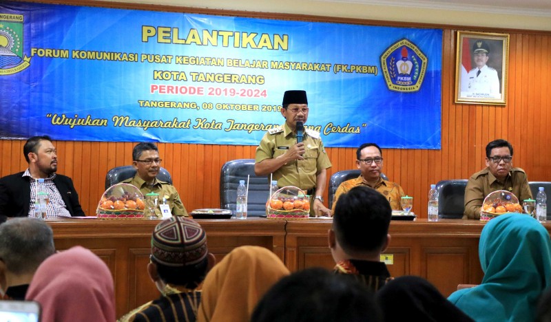 Wakil Wali Kota H. Sachrudin hadir pada pelantikan kepengurusan Forum Komunikasi Pusat Kegiatan Belajar Masyarakat (FK.PKBM) dengan masa bakti periode 2019-2024 di Aula Gedung Windu Karya Badan Perpustakaan dan Arsip Daerah (BPAD) pada Selasa (8/10).