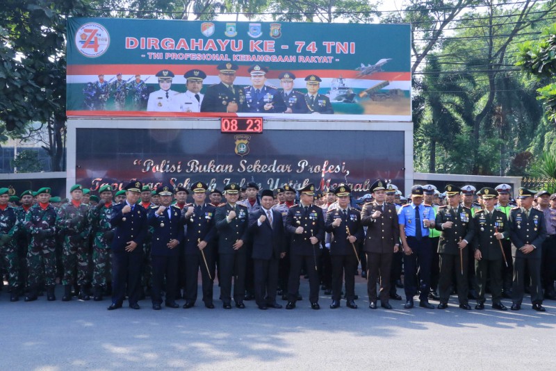 Wali Kota Tangerang menghadiri apel puncak peringatan HUT TNI ke-74 tahun 2019 yang digelar di halaman kantor Polres Metro Tangerang Kota, Sabtu (5/10).