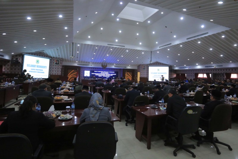 Wali Kota Tangerang H. Arief R. Wismansyah bersama Wakil Wali Kota Tangerang H. Sachrudin hadir dalam Rapat Paripurna DPRD Kota Tangerang dengan agenda Penyampaian Penjelasan Wali Kota Tangerang mengenai Raperda tentang APBD TA. 2020, Senin (23/9/2019).