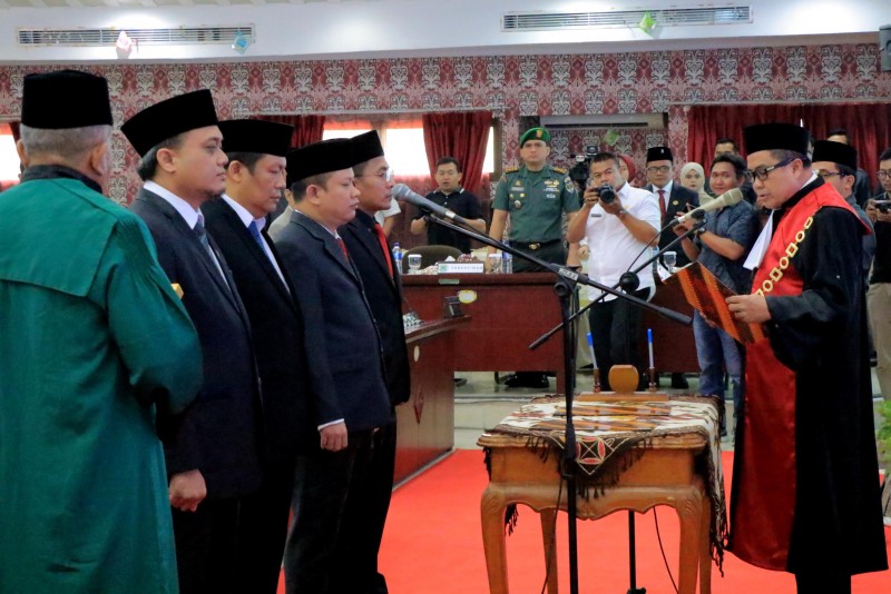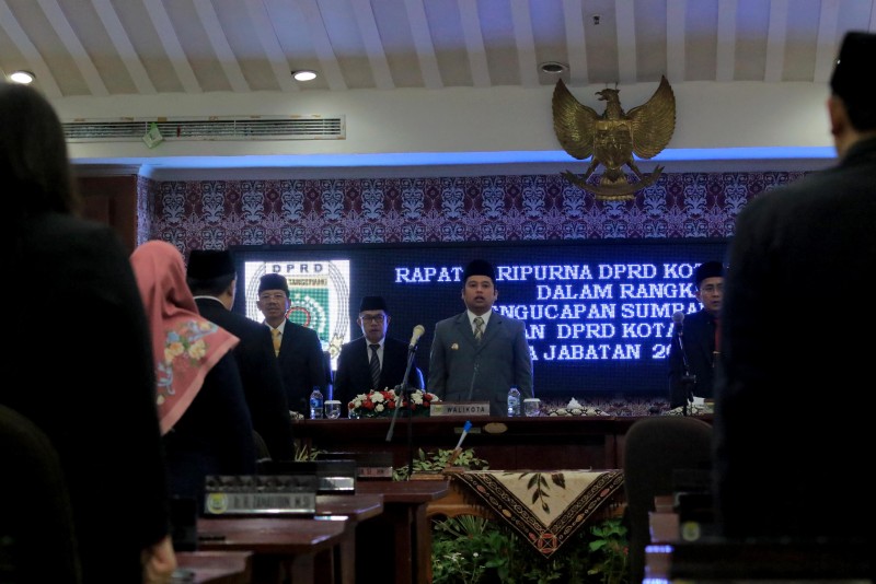 Wali Kota Tangerang H. Arief R. Wismansyah didampingi Wakil Wali Kota H. Sachrudin menghadiri Rapat Paripurna DRPD Kota Tangerang dalam rangka pengucapan sumpah janji pimpinan DPRD Kota Tangerang masa jabatan 2019-2024.