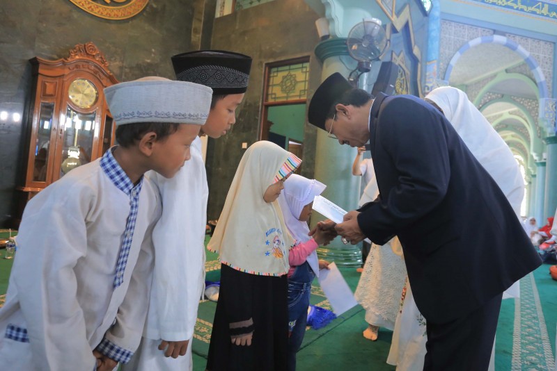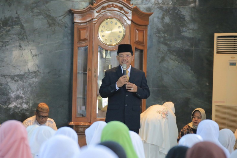 Dalam sambutannya, Sachrudin mengatakan kepada para jamaah yang hadir bersama dengan pemerintah saling bahu-membahu mengatasi permasalahan sosial.