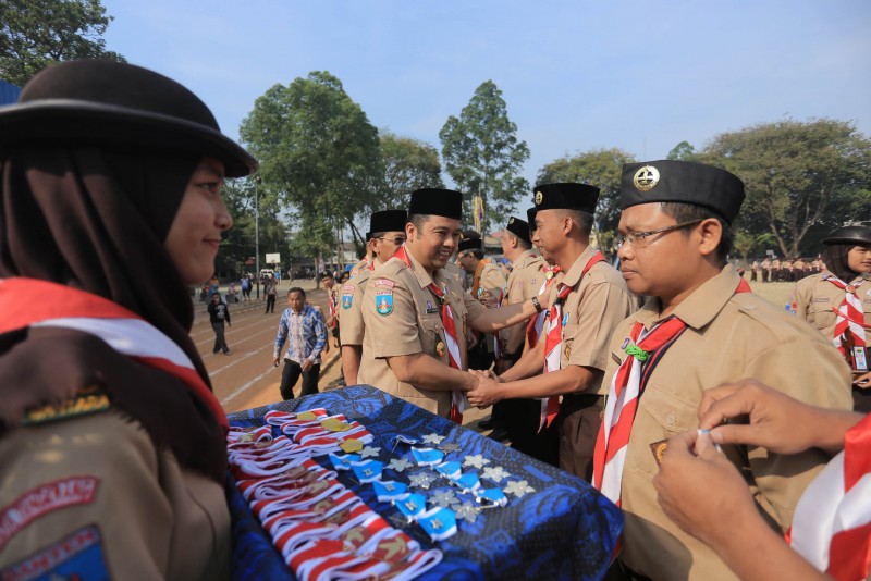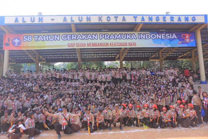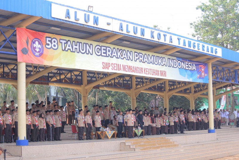 Wali Kota Tangerang H. Arief R. Wismansyah menghadiri acara Upacara Hari Pramuka ke-58 Tahun tingkat Kwartir Cabang Gerakan Pramuka Kota Tangerang mengambil tema "Siap Sedia Membangun Keutuhan NKRI" yang berlokasi di Lapangan A.yani, Tangerang, Sabtu (14/9).