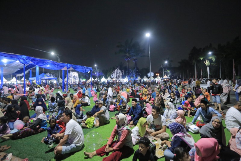 Ribuan warga datang menyaksikan penutupan pagelaran Festival Al-A'zhom ke - 8 yang digelar di halaman Pusat Pemerintahan Kota yang telah berlangsung selama 12 hari sejak 1 Muharram 1441 H atau 1 September 2019.