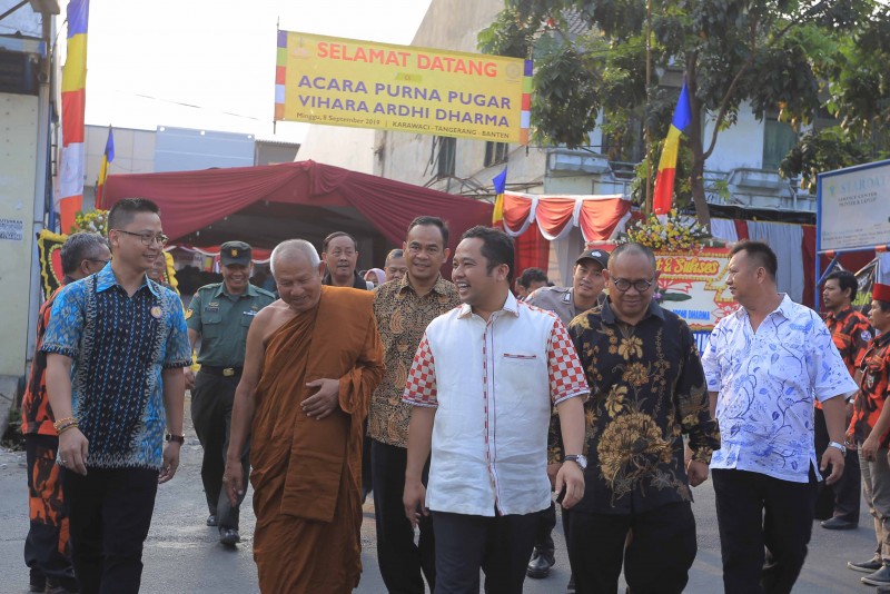 Wali Kota Tangerang H. Arief R. Wismansyah menghadiri acara Purna Pugar Vihara Ardhi Dharma yang berlokasi di Jl. Vihara IV No. 1, Sukajadi, Kecamatan Karawaci, Minggu (8/9).