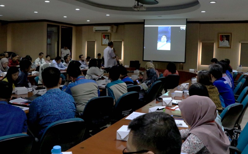 Wali Kota Tangerang Arief R. Wismansyah memberikan arahannya melalui teleconference dalam Kegiatan Pembinaan Kelola Tertib Administrasi Ekspor Impor yang diselenggarakan oleh Dinas Perindustrian dan Perdagangan (Disperindag) Kota Tangerang di Ruang Op-Room Gedung Cisadane Lt. 4, Jl. KS Tubun No. 1, Kota Tangerang, Rabu (4/9/2019).