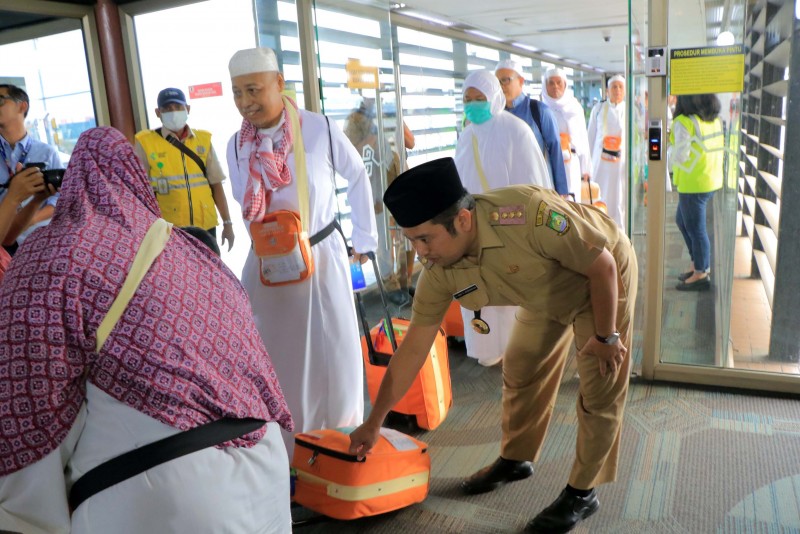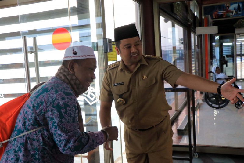 Wali Kota Tangerang Arief R. Wismansyah menerima langsung kedatangan 385 Jamaah Haji Kloter 35 asal Kota Tangerang yang tiba pukul 17.00 WIB di Bandara Internasional Soekarno Hatta, Cengkareng, Kota Tangerang, Selasa (3/9/2019).
