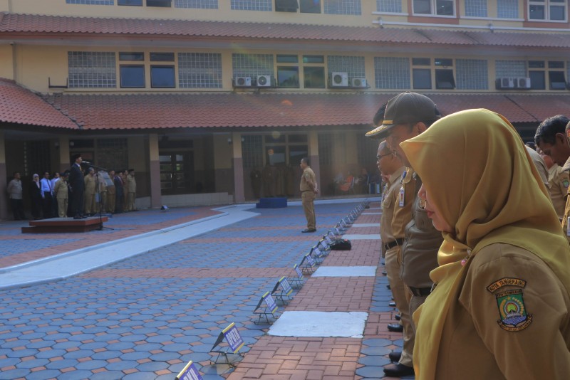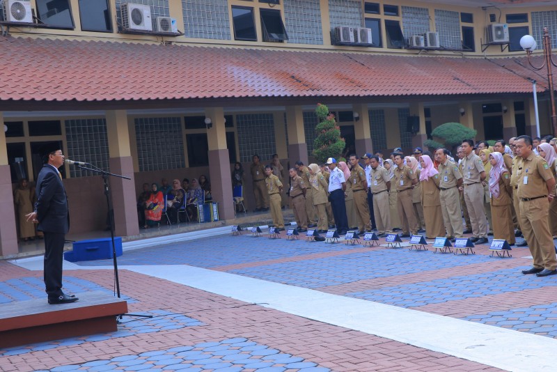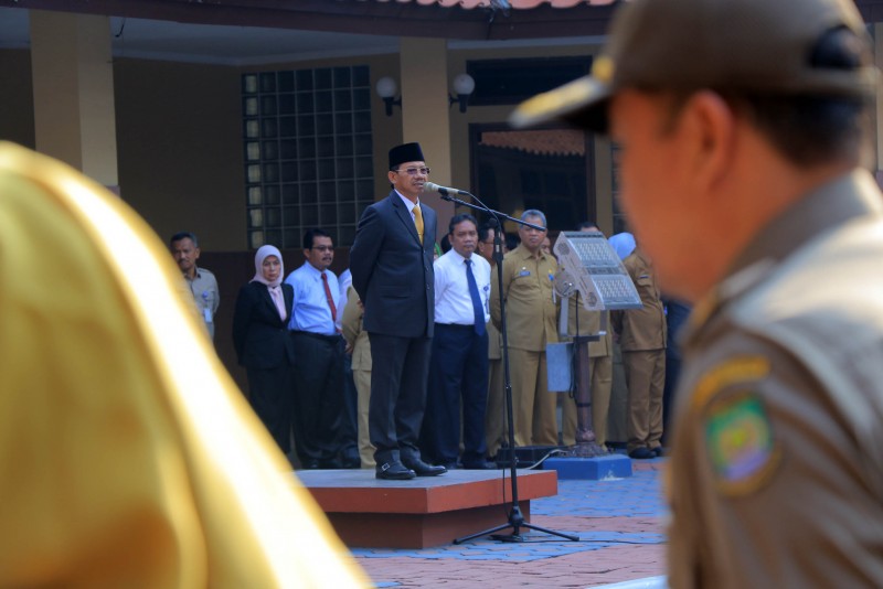 Wakil Wali Kota Tangerang H. Sachrudin memimpin apel pegawai di lingkup Pemerintah Kota Tangerang yang berlangsung di lapangan apel gedung Puspem Kota Tangerang, Senin (2/9) pagi.