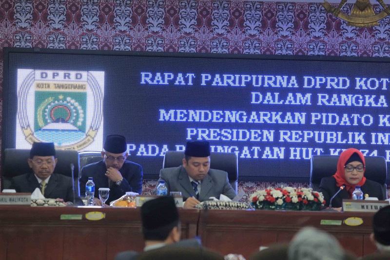 Walikota Tangerang Arief R. Wismansyah dan Wakil Walikota H. Sachrudin hadir dalam Rapat Paripurna DPRD Kota Tangerang Dalam Rangka Mendengarkan Pidato Kenegaraan Presiden Republik Indonesia Pada Peringatan HUT Ke-74 Kemerdekaan Republik Indonesia Tahun 2019, diruang Rapat Paripurna DPRD Kota Tangerang, Jum'at (16/8/2019).