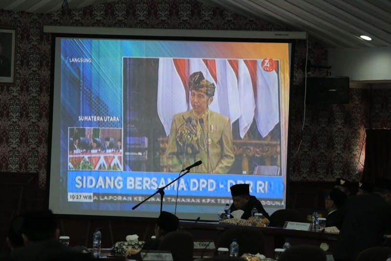 Ketua DPRD Kota Tangerang Suparmi beserta jajaran, Pj. Sekretaris Daerah Kota Tangerang Tatang Sutisna, unsur Forkopimda dan instansi vertikal di Kota Tangerang, turut mendengarkan Pidato Kenegaraan Dalam Rangka HUT Kemerdekaan RI Ke-74.