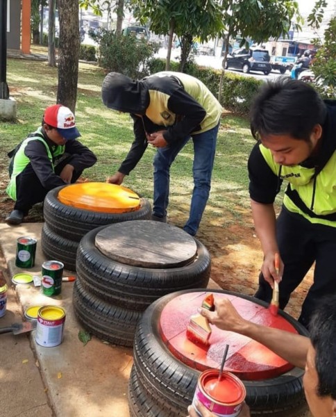 Baru-baru ini, sejumlah petugas di Bidang Pertamanan diturunkan, untuk mempersolek taman tematik agar lebih berwarna. Mengecat sejumlah ornamen agar lebih menarik dan instagrammabel.