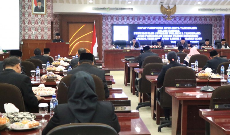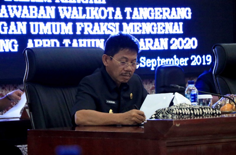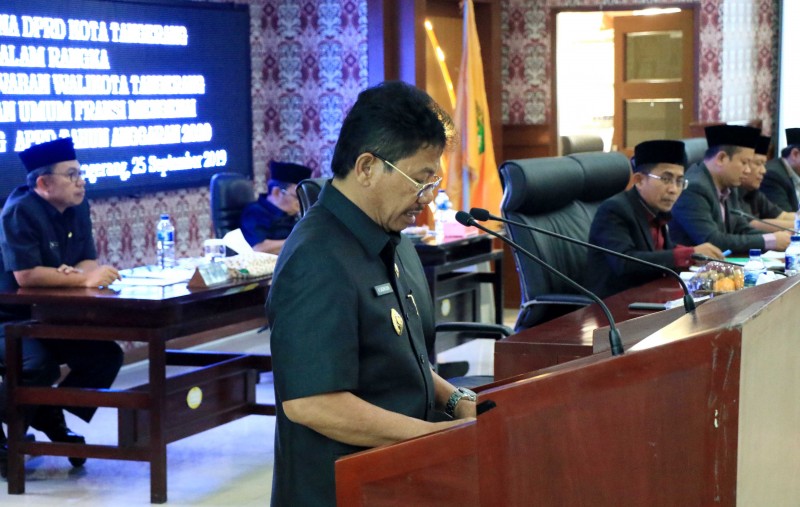 Wakil Walikota Tangerang H. Sachrudin sampaikan Jawaban Terhadap Pandangan Umum Fraksi atas Pengantar Nota Keuangan Rancangan Peraturan Daerah (Raperda) tentang Anggaran Pendapatan dan Belanja Daerah (APBD) Kota Tangerang Tahun Anggaran 2020 di Ruang Rapat Paripurna DPRD Kota Tangerang, pada Rabu (25/9).
