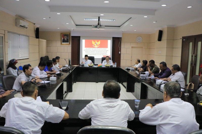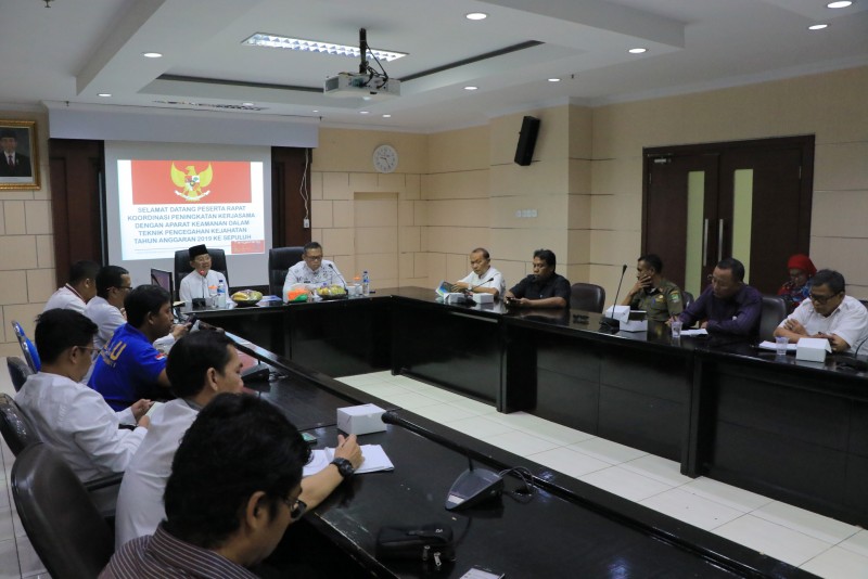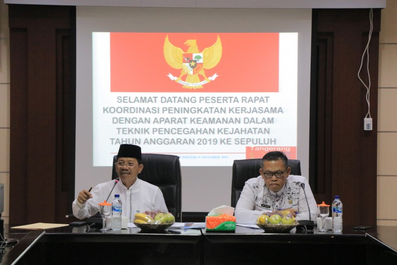Pemerintah Kota Tangerang melalui Kantor Kesatuan Bangsa dan Politik (Kesbangpol) menggelar Rapat Koordinasi Peningkatan Kerjasama Dengan Aparat Keamanan Dalam Teknik Pencegahan Kejahatan di Ruang Rapat Asisten Administrasi Umum Kawasan Pusat Pemerintahan Kota Tangerang pada, Jumat (15/11)