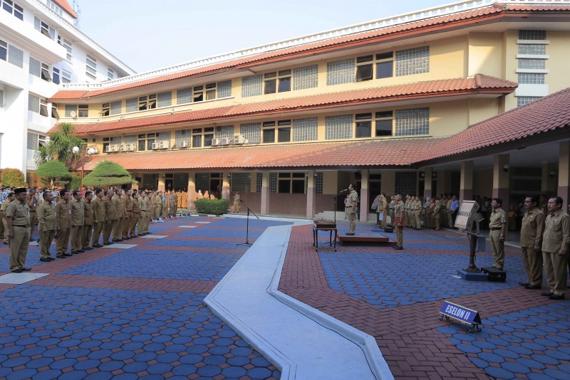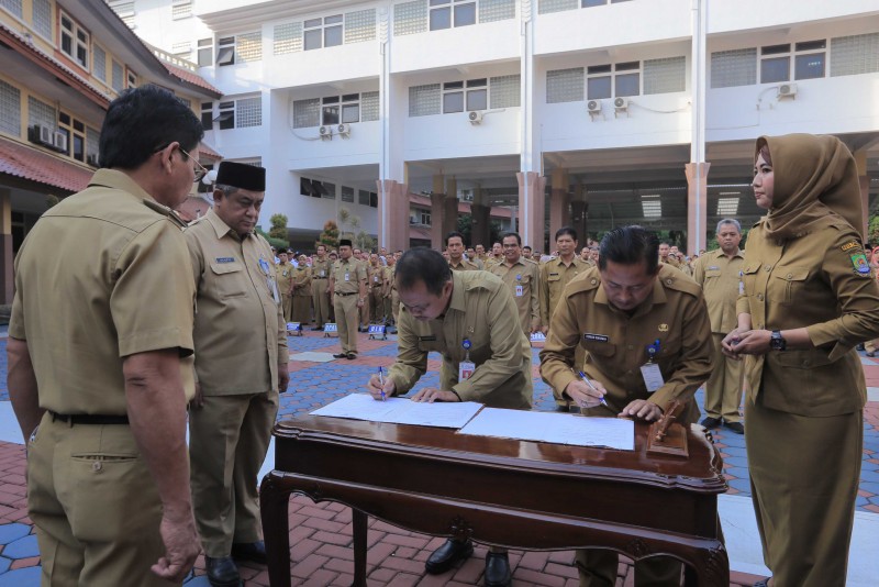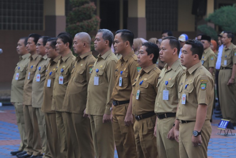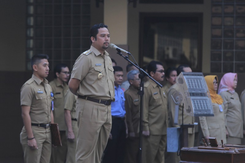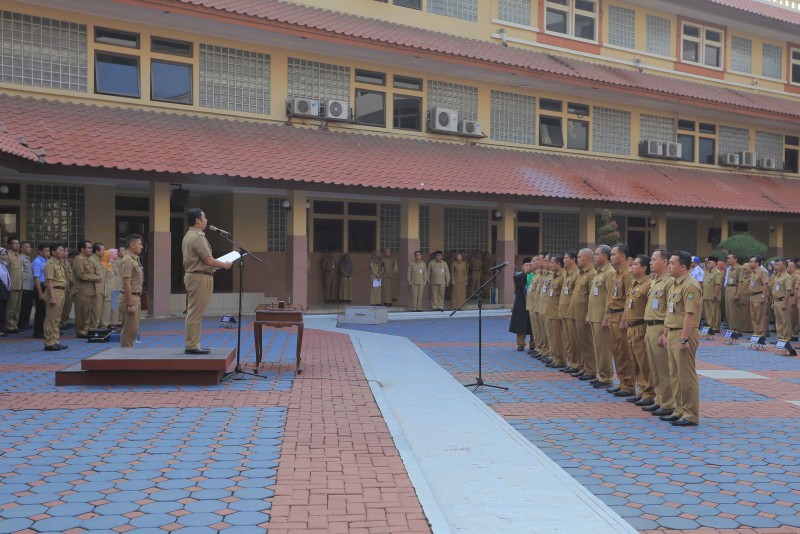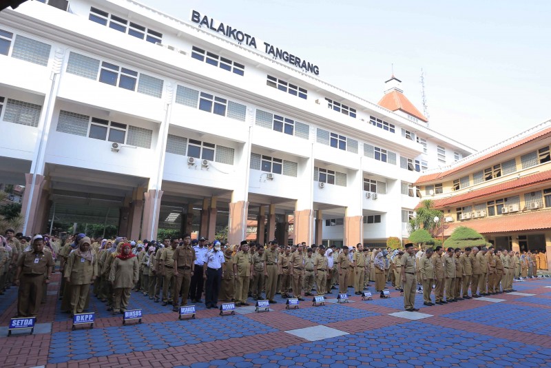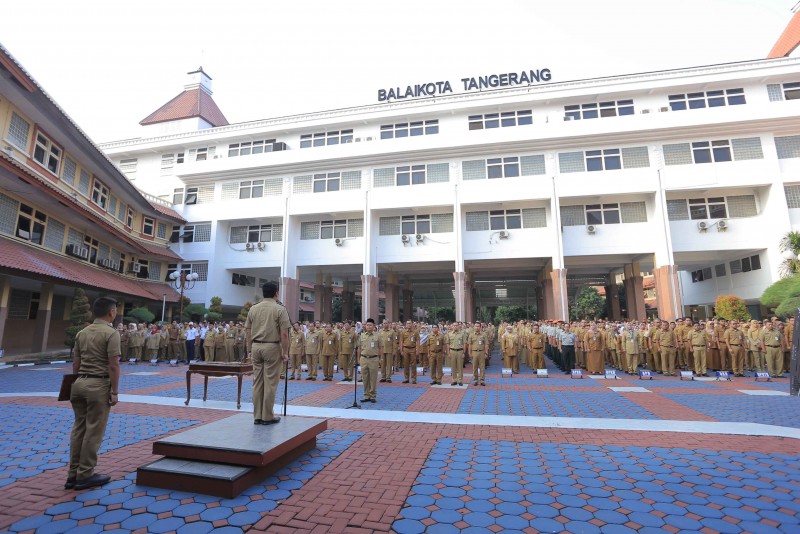 Wali Kota Tangerang H. Arief R. Wismansyah memimpin apel pagi sekaligus melantik Pejabat Esselon II, III dan IV di Plaza Pusat Pemerintahan Kota Tangerang, Senin (8/7/19).