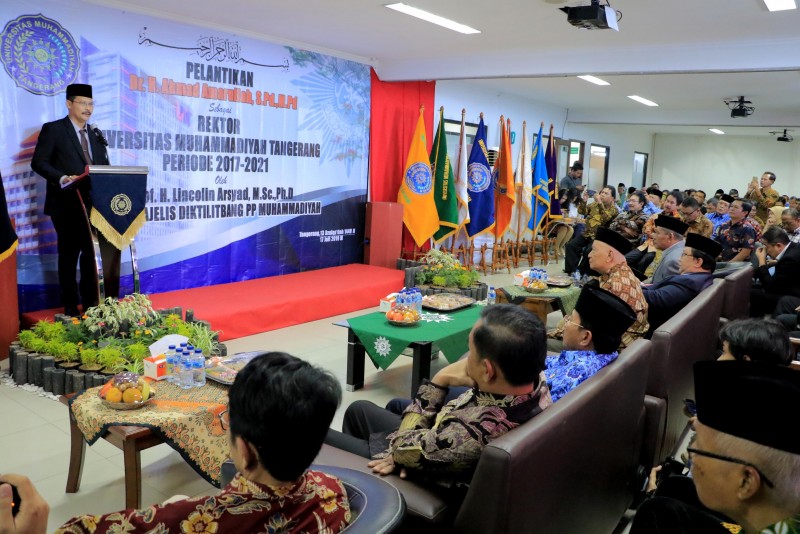 Wakil Wali Kota Tangerang H. Sachrudin menghadiri acara Pelantikan Rektor Universitas Muhammadiyah Tangerang Ahmad Amarullah pada masa jabatan 2017/2021 yang digelar di Aula Universitas Muhammadiyah Tangerang, Rabu (17/07).