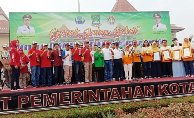Alhasil, pada HUT PGRI ke-74 dan HUT KORPRI ke-48, Kecamatan Karawaci berhasil meraih sembilan penghargaan dalam Lomba Kota Sehat tingkat Kota Tangerang. Penghargaan diberikan langsung Walikota Tangerang, Arief R Wismansyah.