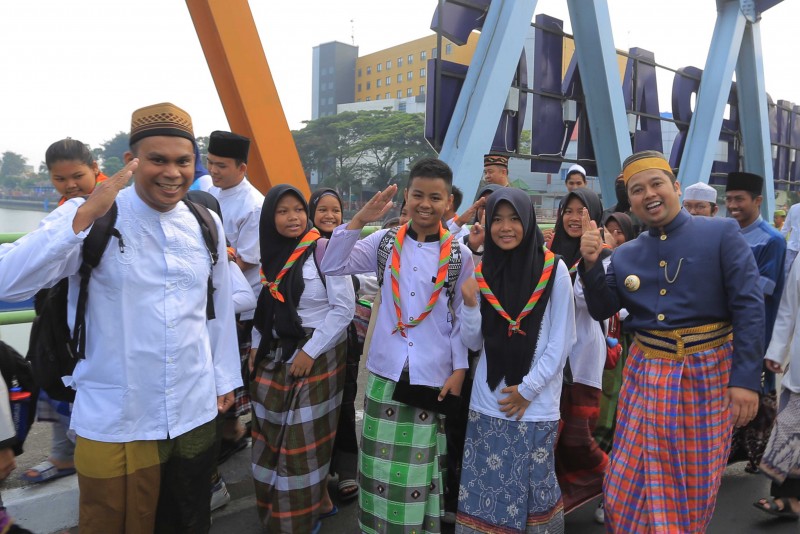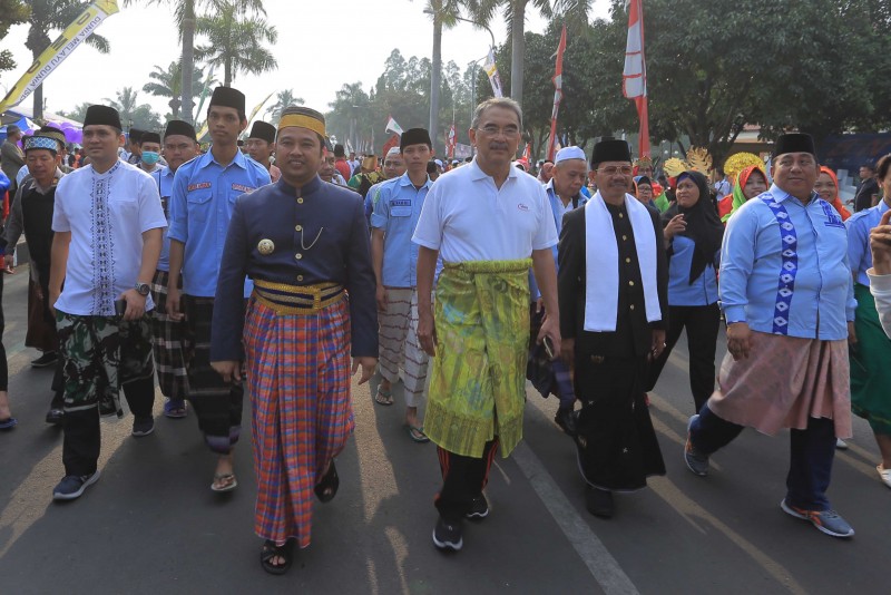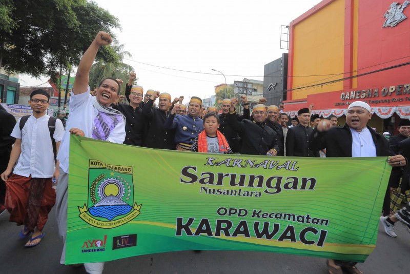 Ribuan peserta mengikuti kegiatan Pawai Sarungan Nusantara yang diselenggarakan sebagai rangkaian Festival Al Azhom ke 8 tahun 2019 dengan titik start di Pusat Pemerintahan Kota Tangerang, Minggu (8/9).