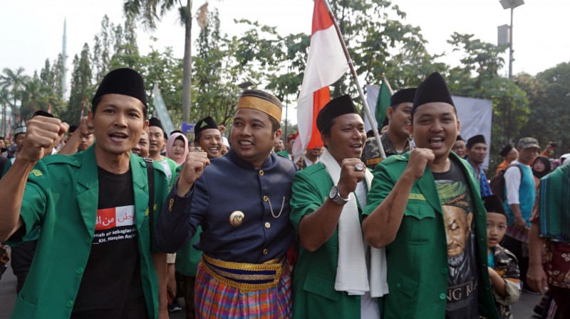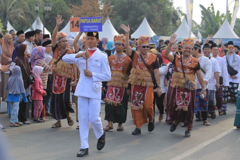 "Ini jadi kesempatan untuk memperkuat ukhuwah selain islamiyah tetapi juga wathoniyah," ungkap Arief yang mengikuti pawai dengan pakaian khas Makassar.