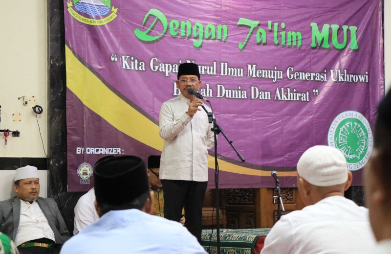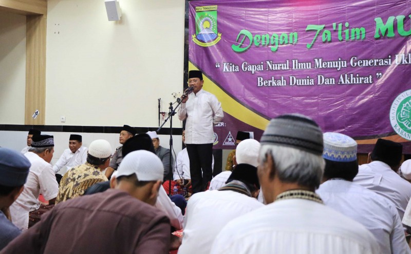 Wakil Wali Kota Tangerang H. Sachrudin menghadiri Pengajian Bulanan sekaligus memperingati Maulid Nabi Muhammad SAW 1441 H yang digelar oleh Majelis Ulama Indonesia (MUI) Kecamatan Karang Tengah, pada Jum’at (25/10/19) malam.