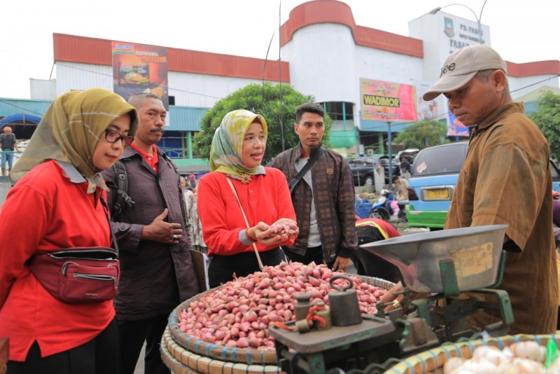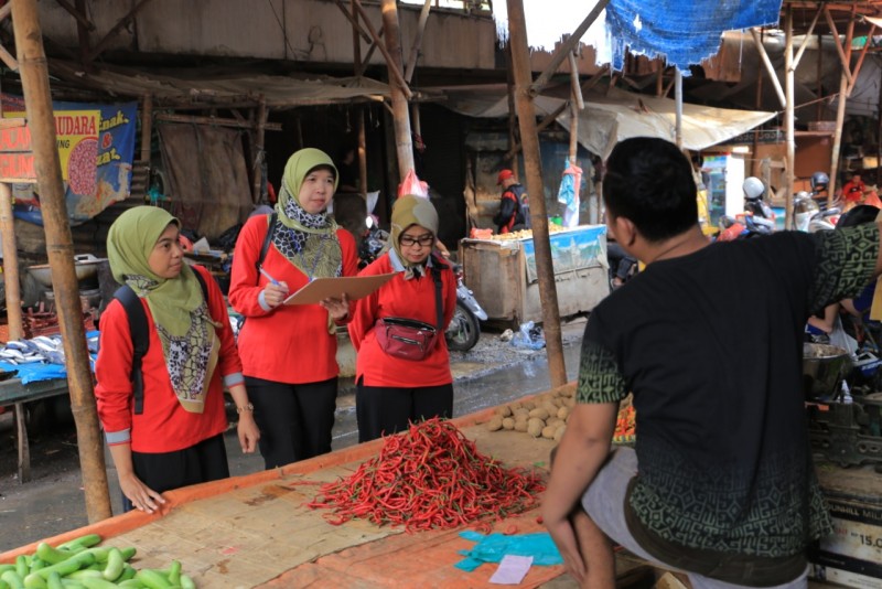 Menjaga komoditi pangan tetap aman. Jelang Hari Besar Keagamaan dan Nasional (HBKN), Pemerintah Kota Tangerang melalui Dinas Ketahanan Pangan (DKP) bersama PD Pasar, Polres Metro Tangerang Kota, Bulog, BPS dan PT Paskomnas melakukan pemantauan harga dan pasokan secara serentak, di Pasar Anyar dan Pasar Malabar, Selasa (17/12/19).
