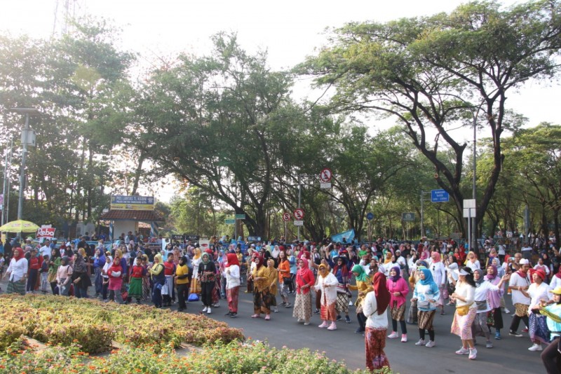 150 peserta yang didominasi emak-emak tak ketinggalan anak-anak milenial yang hadir dengan mengkombinasikan busana tradisional yang banyak dianggap kurang fashionable dengan sepatu sporty.