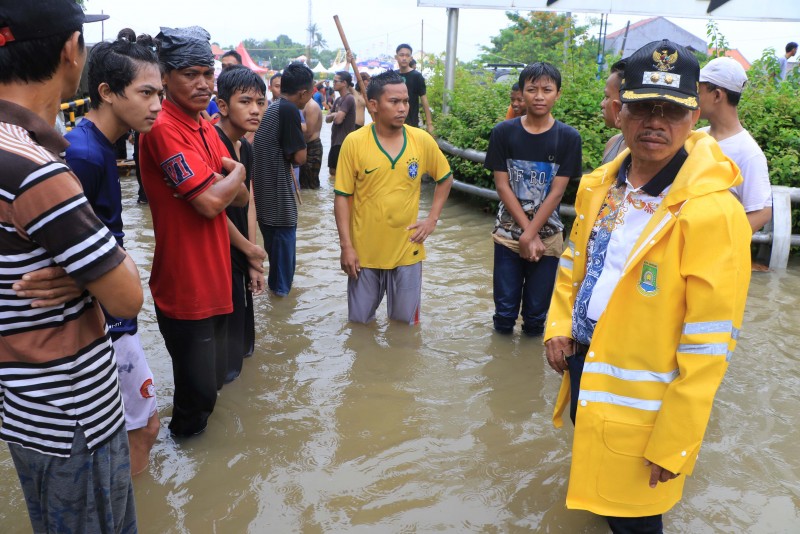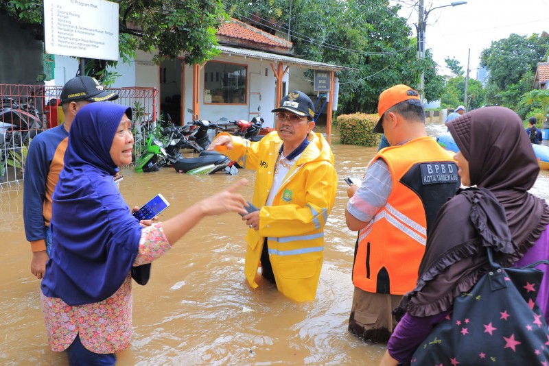 Wakil Wali Kota Tangerang H. Sachrudin meninjau lokasi yang terdampak banjir di wilayah Kelurahan Petir, Cipondoh, Rabu (1/1) yang disebabkan tingginya curah hujan serta luapan air Kali Angke.