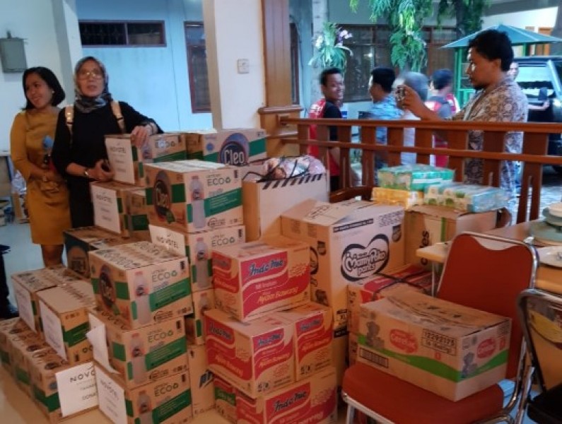 Berbagai bantuan tersebut diterima langsung oleh Asisten Administrasi Umum, Kiki Wibhawa, yang turut didampingi Tim Posko Kota. Adapun berbagai bantuan tersebut akan disalurkan ke posko-posko banjir yang ada di 13 kecamatan, guna meringankan beban saudara kita yang terkena dampak banjir.