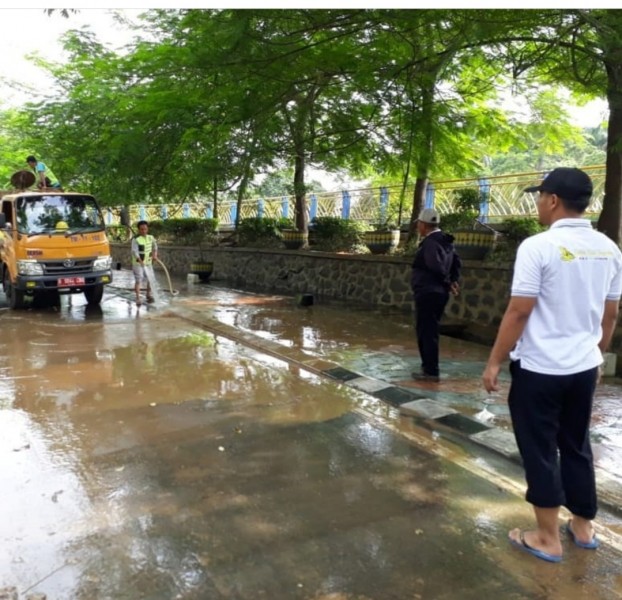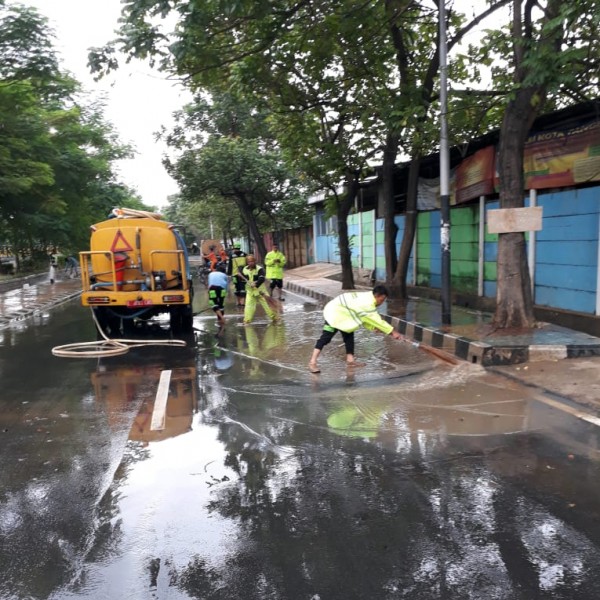 Kepala Bidang Pertamanan dan Dekorasi Kota Tangerang, Hendri Pratama, Jumat (03/01), mengatakan, jalan yang dibersihkan pada hari ini adalah di Pondok Arum dengan mengerahkan satu tangki.
