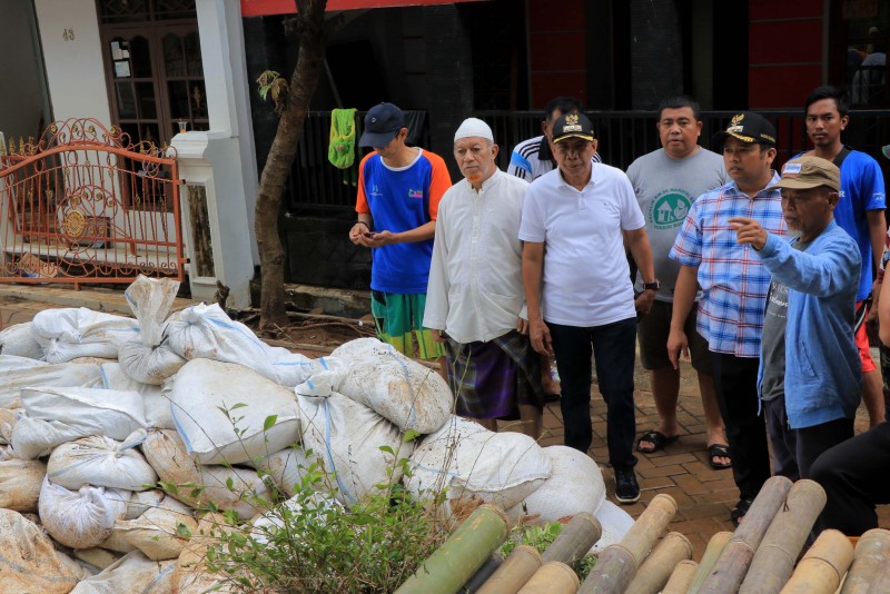 Wali Kota Tangerang H. Arief R. Wismansyah bersama dengan jajaran Pemkot Tangerang meninjau lokasi Perumahan Pondok Bahar, Kecamatan Karangtengah, Sabtu (4/1) yang terdampak banjir akibat luapan Kali Angke beberapa waktu lalu.