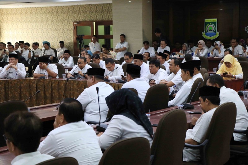 Usai pelantikan 229 pegawai di lingkungan Pemerintah Kota (Pemkot) Tangerang, Wakil Wali Kota Tangerang H. Sachrudin berikan arahan di Ruang Rapat Akhlakul Karimah, Gedung Pusat Pemerintahan Kota Tangerang.