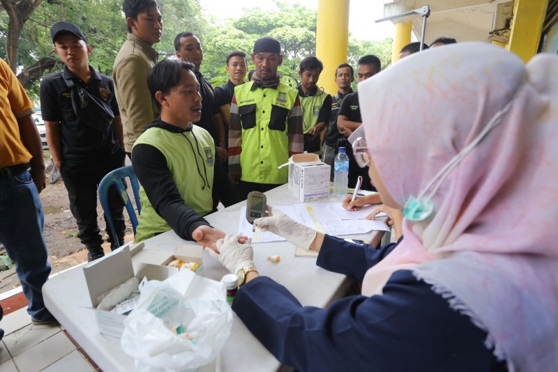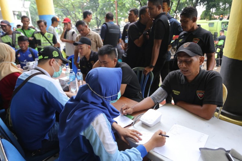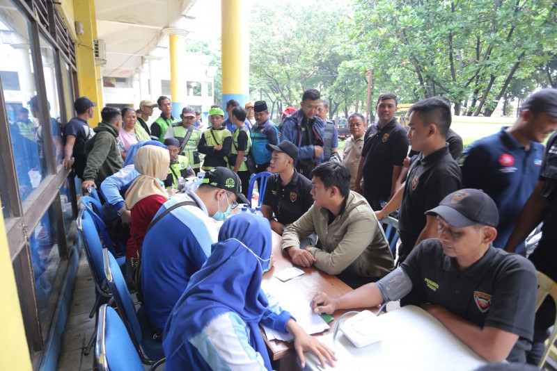 Bukan untuk berolahraga sepakbola, tapi menunggu giliran diperiksa kesehatannya oleh para petugas kesehatan dari Dinas Kesehatan. Kali ini giliran petugas dari Bidang Pertamanan, Dinas Kebudayaan dan Pariwisata Kota Tangerang.
