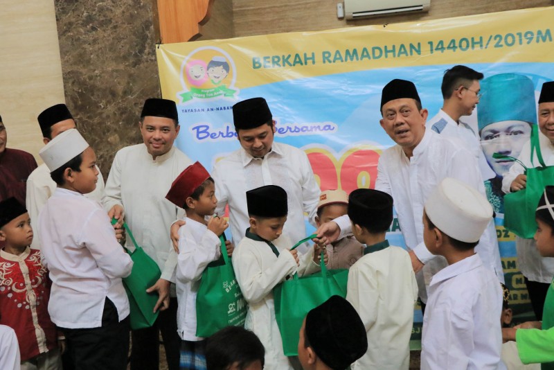 Wali Kota Tangerang H. Arief R. Wismansyah menghadiri acara Santunan dan Buka Puasa Bersama ribuan anak yatim yang digelar oleh Pengurus Program Orang Tua Asuh (POTA) Yayasan An-Nabawi bertempat di Masjid An-Nabawi, Perumahan Banjar Wijaya, Cipondoh, Minggu (19/5).