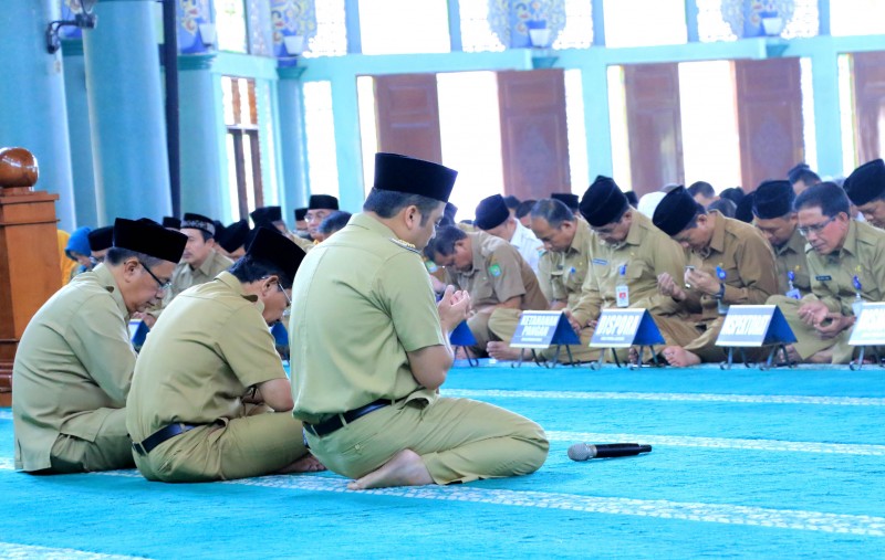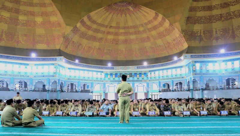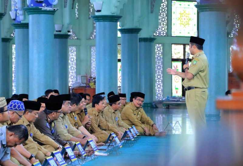 Sebagai pengganti apel di bulan puasa, Pemerintah Kota (Pemkot) Tangerang menggelar Pengajian Bersama Seluruh Pegawai di Masjid Raya Al-A'zhom, Kota Tangerang, Senin (06/05).