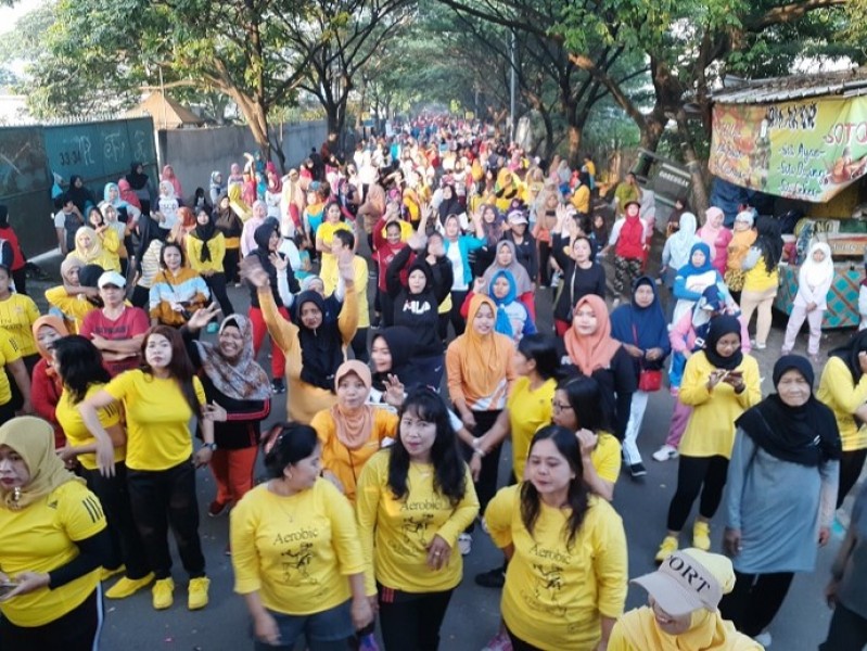 Sekitar 3.000 warga Kecamatan Pinang tumpah di kawasan Car Free Day, Jalan Pinang-Kunciran (Pikun) Kelurahan Pinang, untuk mengikuti senam massal dalam rangkaian HUT Kota Tangerang ke-27, Minggu (19/01/2020) pagi.