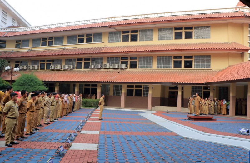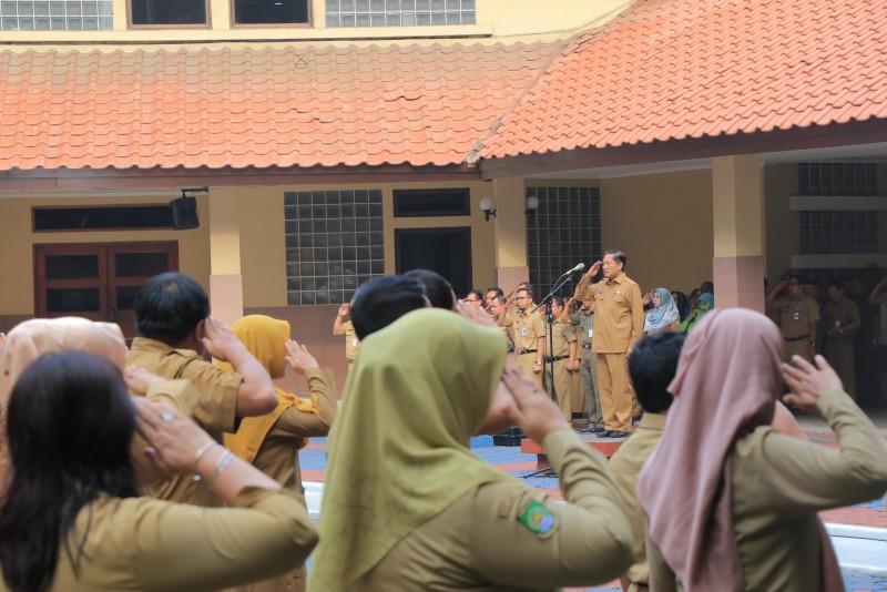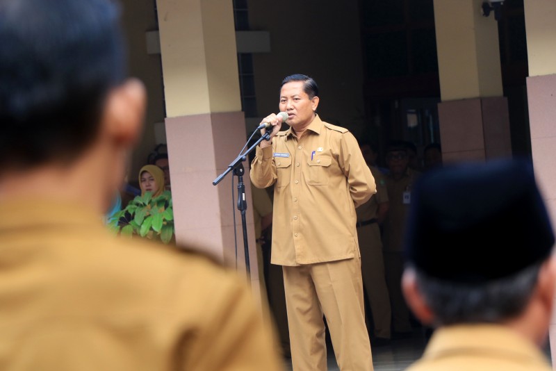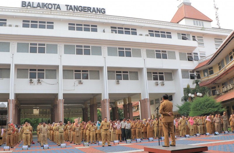 Untuk pertama kalinya usai dilantik, Sekretaris Daerah (Sekda) Kota Tangerang terpilih Herman Suwarman memimpin Apel Pagi Pegawai di lingkungan Pemerintah Kota Tangerang, Senin (20/1).