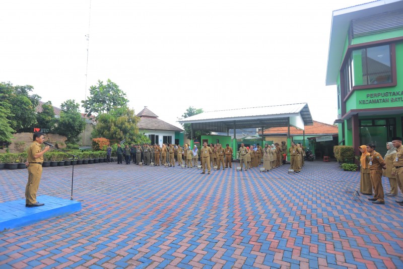 Sebanyak lima kecamatan di Kota Tangerang yang masuk dalam Zona I Pembinaan Administrasi Kecamatan dan Kelurahan melaksanakan Apel Pagi di Lapangan Kecamatan Batuceper, Selasa (30/04/2019). Lima kecamatan yang masuk dalam Zona I tersebut yaitu Kecamatan Tangerang, Cipondoh, Batuceper, Neglasari, dan Benda.