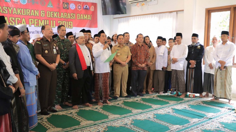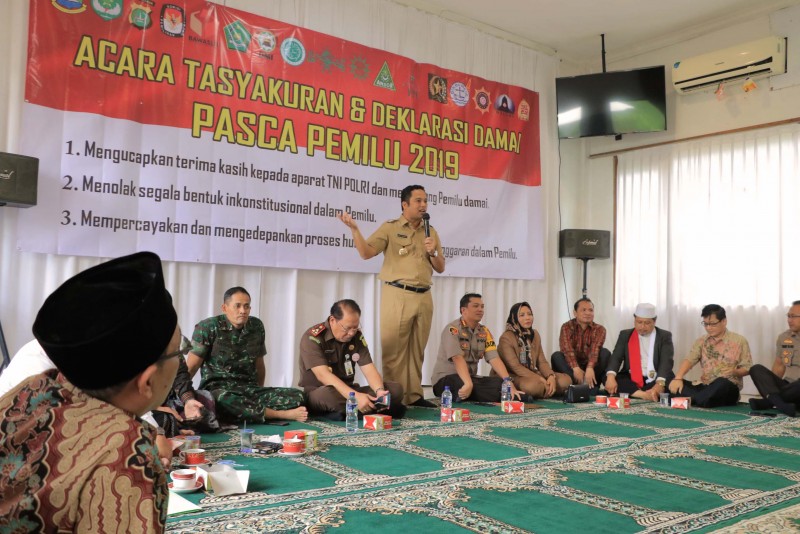 Pemerintah Kota Tangerang bersama TNI, Polri, Tokoh Agama serta Tokoh Masyarakat Kota Tangerang menggelar Tasyakuran dan Deklarasi Damai untuk menciptakan kondisi yang nyaman dan damai usai coblosan Pemilu 2019.