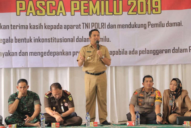 Wali Kota Tangerang H. Arief R Wismansyah hadir dalam acara Tasyakuran serta Deklarasi Damai pasca Pemilu 2019 yang digagas oleh Polres Metro Tangerang Kota di RM. Remaja Kuring Kota Tangerang, Jatiuwung, Selasa (23/4/2019).